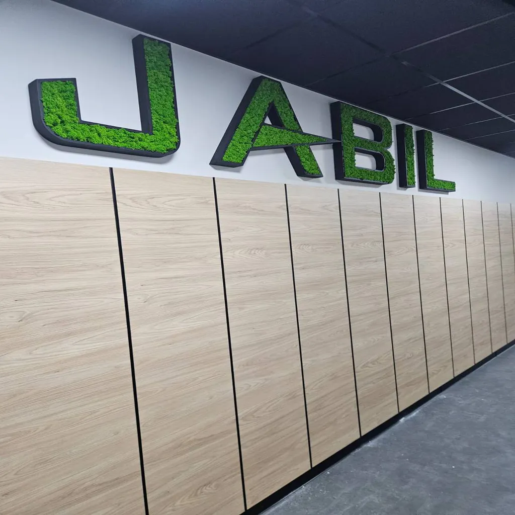 A 3D fa betűk mohával töltve egyedülálló módon ötvözik a természet szépségét a modern dizájnnal. Ez a megoldás tökéletes választás azoknak a cégeknek és magánszemélyeknek, akik fenntartható, kreatív és látványos dekorációt keresnek. Legyen szó irodai brandingről, recepciós pult hátteréről vagy otthoni dekorációról, a mohás fa betűk garantáltan vonzzák a tekintetet.